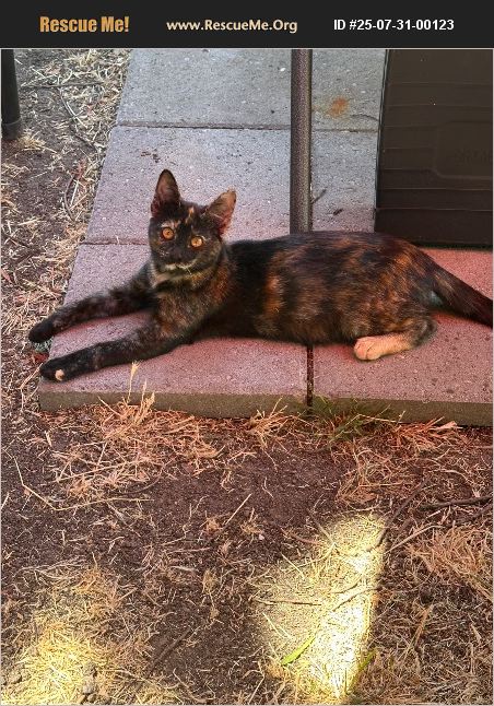 Very sweet and affectionate kitten roughly 3 months old. She loves to get pets, purrs, climbs, and gives kisses. She loves to explore and play with leaves, and other various natural things. She is ok with adults, has never been around kids, but I'm sure she would be ok with mild tempered children. Kitten will be spayed and vaxxed before adoption.
