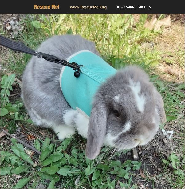 Rabbit was abandoned to us and the owner never came back for her. She was mistreated so she was checked and put on a special diet of Timothy Hay, rabbit pellets for treat to get up her weight,fresh greens like clovers and dandelions as a treat to help with digestion. She does like getting up to 3 of those berries flavor rabbit drops as a reward after cleaning of her pen and 1 rabbit cookie that she goes crazy for as a reward at night so she doesn't get to noisy. She loves attention so a cookie at the end will calm her down near the end of petting, brushing, and playing with her. She loves children like calm acting little girls. She loves going outside to play and eating dandelions and clovers. She is great with gentle people and children. She will get along with well behaved cats that don't scratch. She needs a lot of Timothy Hay as she will eat a lot as it is needed for her digestion. She also needs plenty of clean fresh water as she will go through her water bottle pretty fast by the next morning. She also loves to explore and hide if you let her run around in a room, the house (you need to watch her as she will chew on things like wires, cloth, and other things), she likes the shade when outside like hiding in bushes as she doesn't like the heat from the sun, so have those rabbit tunnels and igloos so she can lay in, and probably the best time to take her outside to play in the grass is in the evenings when there's more shade and less hot outside. She will come and sit in your lap if you let her come to you. Please don't force her as she will bite you if you pick her up wrong or aggressive. She can also because territorial with her pen or enclosure that you have her stay most of her time in. She is litter trained but you still need to keep her pen clean as she will start to tear up the paper or bedding that you put in there as she likes to keep everything clean as she urinates a good amount since she has to drink a lot of water with her hay. Just put the litter tray in the corner use the on the upper right corner of her habitat or if you are using the bedding / shredded paper. He also loves to have her head stroked by the back of your hand and her ears gently rubbed as she will start to fall asleep. Again she needs a lot of love and attention so if you are one of those people that are not going to show her attention or play with her then you do not need to answer this ad.