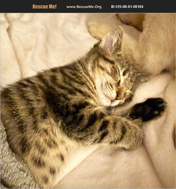 We found Roo in a gas station parking lot back in May of this year (2025). We have had her and raised her ever since. She is very loving and likes to cuddle and purr after playing. She splits her day between exploring, playing, sleeping and loving. She does great with our 2 dogs and our daughter's older cat. She is litter box trained and does very well in the house. The only time she is left in her kennel is when no one is home. She likes to snuggle and sleep close to you at night. She's a good mix of playful and cuddly.