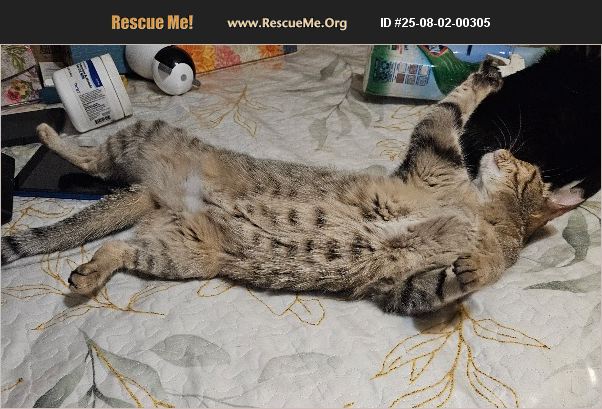 1 year tabby that will make you smile. This girl has a personality and a half. Loves attention and gets silly when you talk to her flops down and rolls around. TEXT IF INTERESTED. Fee is cat food we can discuss