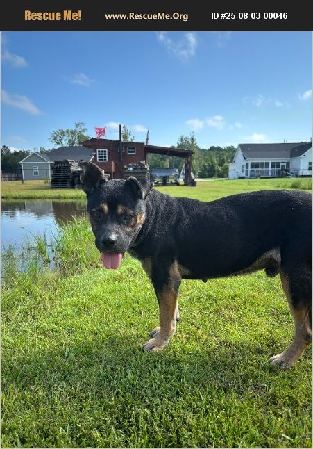 Found this dog roaming my neighborhood and took him in for fear that he would get hurt as one of my neighbors threatened to shoot him and he was just hot, thirsty and hungry! We wish we could keep him but we already have 7 rescues! Once he got to know us he became a sweet lovable dog. He definitely needs some training especially with feeding.