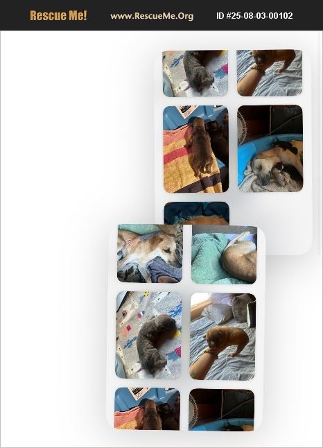 Found 2 pregnant mamas that gave birth to ten puppies each. Mamas look like a black mouth curr/ mix and are about 40 pounds full grown. Puppies are two weeks old now.