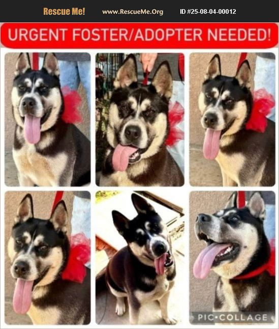 EXTREMELY URGENT DAKOTA NEEDS A FOSTER OR ADOPTER IMMEDIATELY! PLEASE SHARE! HER LIFE DEPENDS ON IT. Dakota is running out of time. This beautiful, young female Husky was found abandoned, wandering alone in a neighborhood with only a too-tight collar around her neck, no microchip, and no one looking for her. The kind-hearted Good Samaritans who brought her in gave her love, safety, and a warm place to rest. But they're struggling with serious physical disabilities and can no longer care for her, not because of anything Dakota has done, but because they physically can't keep up with her needs. And they REFUSE to send her to the shelter because they know it could be the end for her. The shelters are overflowing, and Dakota deserves so much more. This girl is a total water-loving, ball-chasing, zoomie-happy goofball with a HUGE heart and playful energy: She LOVES to play, splash, and run free. She's smart, eager to learn, and thrives on human interaction. She gets along with dogs but may overwhelm smaller, more timid pups with her playful energy. No cats please she'll chase. No small kids because although she's a LOVEBUG, she's clumsy and an excited girl. She needs leash training and structure, but she's so ready to learn. Around 50-60 pounds of pure fluff, fun, and sweetness. Dakota has a sweet, childlike soul. She just wants to love and be loved. She needs an active foster or adopter who can give her the space, guidance, and love she desperately craves. She would be amazing for a runner, hiker, or outdoorsy couple who wants a loyal adventure buddy. If you can help save Dakota, please contact Jennifer at Pumpkin Pawz Rescue ASAP: +1 (714) 366-8170 (text is best). Please don't scroll past her. Don't let her end up in a shelter. She has so much life and love to give. We can't let it end like this. Share this post everywhere you can. It takes a village. Let's save Dakota!