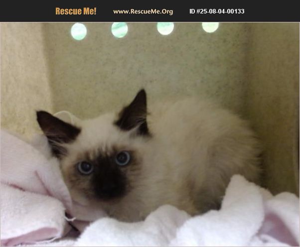 I am described as a male, seal point Balinese. The shelter thinks I am about 5 months old I weigh approximately 3.80 lbs. I have been at the shelter since Jul 30, 2025 and I may be available for adoption on Aug 06, 2025 at 12:52PM.