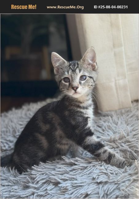 This kitten is in Tennessee. Adoption Donation $100 if picked up in TN.* Visit http://aarf-tn.com/adopt/cat-adoption-application/ to apply. Tom-Tom is a fun-loving, friendly little guy with an endless supply of energy and curiosity. This playful gray tabby kitten is always on the move, whether he's climbing his perch, darting through his tunnel, or chasing his favorite mouse and ball toys across the room. When he's not zipping around, he's soaking up affection from his humans, happily purring in response to pets and attention. Tom-Tom is also a snuggler when it's time to wind down, especially after a good play session with his brother. At 3 months old, Tom-Tom is still growing into his personality, but so far he's shown that he's adaptable and easygoing. He gets along well with other cats and dogs after a proper introduction and is generally comfortable around children, though he may need a bit of time to warm up if things get too loud or chaotic. Watching Tom-Tom play is a treat-he's endlessly entertaining and full of charm. He does have slightly lessened vision due to an eye infection as a baby. He would thrive in a home that offers plenty of space to run and explore, and ideally one with a companion-whether that's another kitten, a playful pet, or kids who can keep up with his energy. Tom-Tom is ready to bring joy, laughs, and lots of love to his family. * $175 plus transport fee (varies) for adoptions to the Northeast. Interested in adopting? Take the first step and complete an adoption application on our website: http://aarf-tn.com/adopt/adoption-apps/ If you have questions that are not covered in the profile, visit the Pet Inquiry Form: http://aarf-tn.com/contact/pet-inquiry-form/.