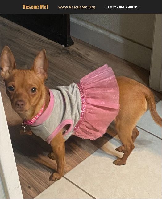 Cielo is about 1 1/2 years old only 5 pounds and is very sweet and gets attached to people quickly especially kids. She is very good with kids currently lives with a 4 and 2 year old. She also lives with other dogs and a few cats in her foster home. She's waiting a Patiently for her forever home. Her previous owners needed to move to a place more affordable and unfortunately no pets allowed. Please contact for more information. Fee may be flexible depending on many factors.