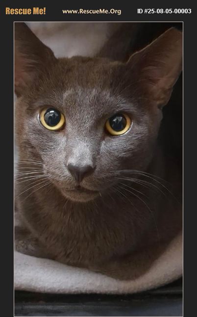 If you are looking for a special needs Russian Blue cat to adopt, King Bob is the cat for you! Bob was dumped on the streets of Phoenix in the middle of summer. Then someone watched as a person kicked Bob in the butt so hard that he broke his tail and damaged his spinal cord so badly he can't pee on his own anymore. This doesn't stop Bob from being everyone's best friend though. He is quick to love every new person that comes his way. We have been teaching Bob tricks. Right now he knows how to beg, spin, and jump on your back. He is very food motivated especially for freeze dried minnows, Churus and Delectables. He loves to play with laser pointers and feather wand toys. He is a very curious cat who loves to explore new areas. He really loves spending his time in a catio, climbing a cat tree. When you come home he gets talkative and will tell you how much he missed you, even if you were gone for just a couple of minutes. Bob's tail is healed from the break and he has a little bit of movement in it, but for the most part you won't see it move much. He still can't pee on his own so he does need to be expressed 3 times a day. He does take lactulose 2-3 times a week to help keep the stool soft enough for him to poop on his own. He is also on 2 supplements to prevent him from getting a UTI. He gets both of those twice a day. Bob does great with taking oral meds. He doesn't put up a fight at all. As you can see Bob does have quite a few medical needs, but once you get into the swing of things it's actually easy to take care of him. Plus, seeing Bob playful and loving life despite everything gives you tremendous satisfaction and fulfillment in life. Bob's ideal family wouldn't have any dogs or other cats. He does well with children 12 years old or older. It would be great if the adopter had experience expressing a cat bladder, but if not, we'd be happy to show you how it's done. You'd come over regularly to do it with us until you are able to do it alone confidently. Bob has to stay on a wet food only diet because dry food causes him constipation. King Bob is neutered, vaccinated, microchipped, snap tested, and his blood work is normal. On top of that, he's had an MRI and X-rays to pinpoint the exact trauma he faced. Proof of all his medical records can be provided.
