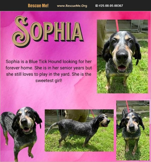 Elbert Animal Control (706 283 5054) in Elberton, GA, has 2 deserving bluetick hounds needing Rescue or Adoption. They are a small facility and space has become an issue. There is never a fee for a Rescue to pull, and adoption fees are waived this month for adopters. Both dogs were strays, picked up within a mile of each other. Neither is spayed/neutered. Both dogs, while considered seniors, can run and explore with the best of them. The female had a slight limp that responded to a joint supplement and does have a small lump on her back that does not seem to bother her. Neither dog has shown any behavioral issues like resource guarding or aggression. Both dogs are friendly; Sophia is quiet, calm, sweet and not terribly vocal. Woof is more engaged and more vocal. Intakes are wormed, get parvo/distemper and Bordetella. Blueticks make such great companions. Please consider Sophia or Woof if you agree with me.