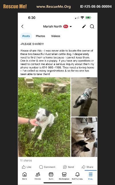 Two sweet & well behaved Blue Heelers - working on leash training. I believe it's Dad & son - playful, but they will listen if you give them direction. They were dumped & I've carried them for over a month now. I have 7 animals already - so I cannot keep them. Please, they need a loving home.