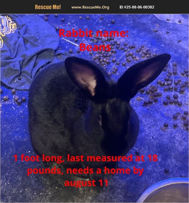 Beans is a retired show rabbit, and a mother. She gave brith to 9 babies about 4 months ago. She is very curious however very shy and scared when meeting new people. I recommend giving her a couple days to acclimate to her new home. Beans is also somewhat toilet trained, we give her a pink litter bin that she pees in most of the time, but she does miss sometimes.