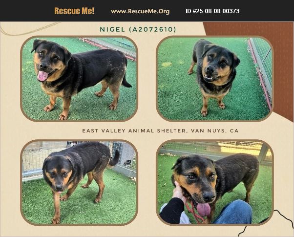 You'd be wise to navigate to the East Valley Animal Shelter, Van Nuys, CA, to meet/adopt/rescue 3-year-old NIGEL (#A2072610), because he is a gem, a really big gem. NIGEL was found on the street, and a microchip was found when he was scanned, and he was on a longer hold at the shelter so the POS (Possible Owner) might be reached. A couple of people have said that it's good that the POS hasn't shown up, because the person didn't do right by NIGEL. I've gotten to know NIGEL and, hopefully, someone will adopt/rescue/foster him and do right by him forevermore. Despite his 126 pounds (he should probably lose several), he is easy to manage. He let me bathe him, and a couple pounds of dust might have washed off. He's been in a few playgroups and notes describe him as a 'gentle giant,' albeit 'anxious,' 'couch potato, chilled.' Indeed, NIGEL likes to nuzzle. East Valley Animal Shelter 14409 Vanowen St., Van Nuys, CA 91405 Open: Tues-Fri 8-5; Sat & Sun 11-5; Closed Mondays