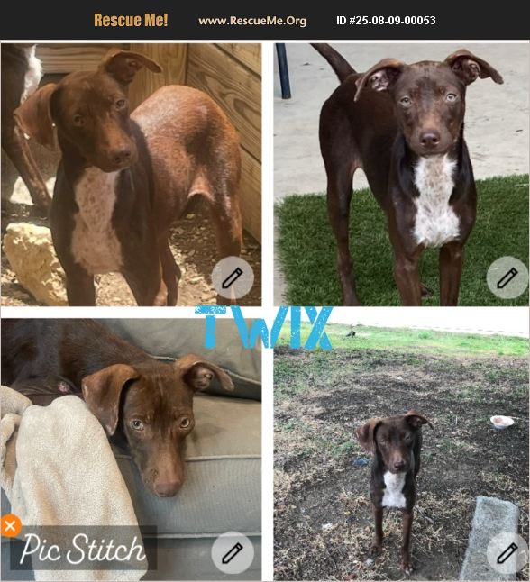 Twix is such a unique looking dog. We're guessing on his breed, but he has full grown at 20 pounds. He has house trained. He gets along well with cats, dogs and children. Such a sweet, handsome chocolate boy seeking his happy forever responsible home.