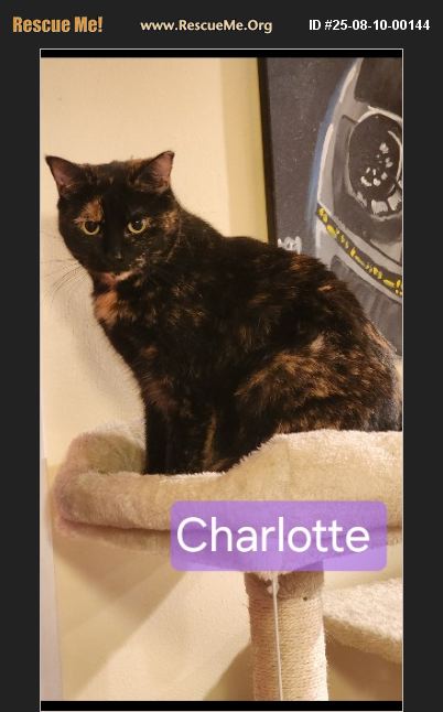 Charolette is a beauty tortoiseshell cat that was given to me in April of 2024 after she was found pregnant on my friends porch. Char loves window watching and if you have a screen door she will be watching there too! She is great with cats. I have 3 other cats that are related and she coxiest with them but loves the only boy cat (Jack) as they cuddle and play often. She is such a beautiful soul and loves to chat especially in the bathroom. When its the evening and bathe time look to your right or left of you tub and chat will be there watching and chatting! She loves the liquid of wet food doesnt always eat the actual food (fun fact). If you are someone who truly loves cats, loves to snuggle with them, and consider them your family. You are someone I need to speak with! :)