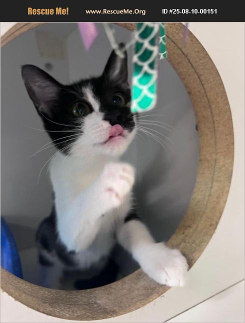 This sweet 12-week-old girl is bursting with kitten energy and charm. With her striking black-and-white pattern and sparkling green eyes, Kiwi is as gorgeous as she is playful. She's always up for an adventure (especially if it involves toys!) and can't wait to find a forever home.