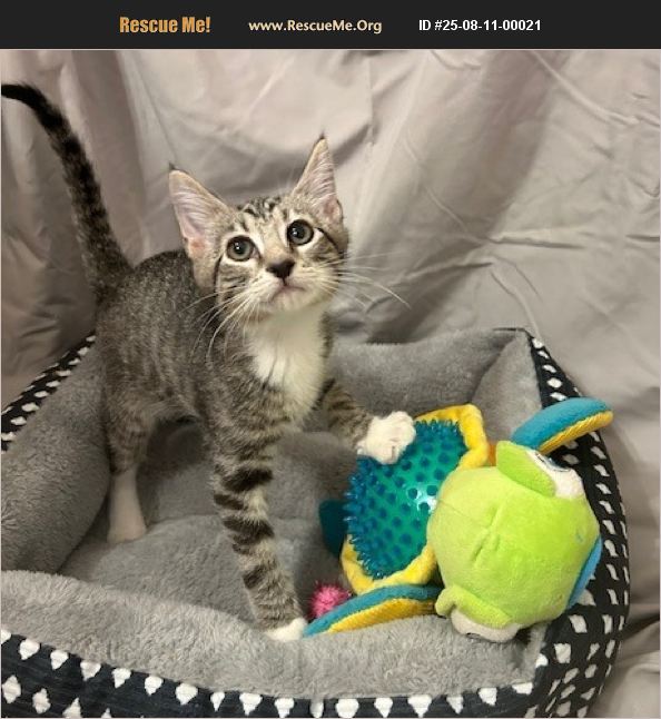 Yuko and his siblings had a rough start in life. They were taken from their mother when they were still very young and dropped off at an animal shelter in a box. They were left alone in the box with no food or water until they were rescued the next day. Yuko has been with his foster family for about 10 weeks getting lots of food, love and attention from family and friends of all ages. With his white-tipped toes and bold tabby stripes, Yuko is always ready for an adventure. This sweet boy loves zooming through the cat tunnel, batting at toys, and curling up in your lap for a cozy nap. He enjoys hanging out with his foster mom while she is working and is learning to be a good supervisor! When he is ready for a nap he likes to snuggle and make biscuits. Yuko is good with gentle dogs, perfectly litter box trained, and adores being held. His most charming quirk? He gives the softest head bumps to show his affection. If you're looking for a kitten who's equal parts playful and loving, Yuko is your guy. At this age, Yuko will need to be adopted with another young kitten (maybe one of his 3 brothers) unless the adopter already has a young cat at home. To meet Yuko and other adoptable Purr Partners kitties at one of our weekend adoptathon events, 1) review our adoption policies at https://www.purrpartners.org/adopt/policies/ and 2) then apply to become a pre-approved adopter at https://www.purrpartners.org/adopt/cats/