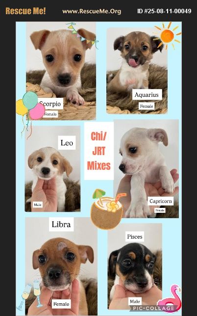 This little is 8 wks old. They are Chihuahua/JRT mixes. They are sweet, well socialized and beautiful. They are recovering from ringworm. They are no longer contagious, just waiting for the hair to grow back. If you are interested, please complete our application. https://app.ontask.io/w/rpof/adopt