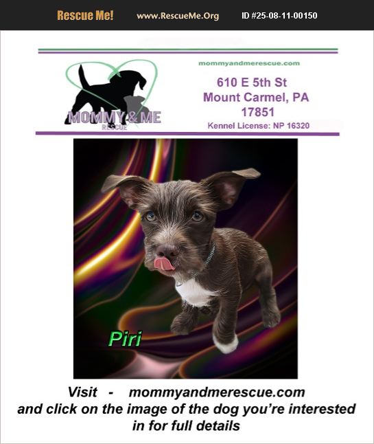 Please fill out an application here ) https://mommyandmerescue.com/adoption-application/ and give your vet clinic permission to speak with us. Spayed/Neutered, UTD on vaccines, Chipped Adoption fee 400 You must submit the application and be approved prior to meeting one of our dogs. Please add our EMAIL to your contacts! [email protected] Kennel License: NP 16320 Poodle- Chihuahua mix 3 months old Male Approximate adult weight: 10 - 12 pounds Piri is sweet, intelligent, and silly. He is a typical pup and loves everyone he meets. He loves playing with other dogs.He would be fine with kids and cats. He loves scrambled eggs and going 'night-night'/ Piri is house-trained and crate-trained. He was trained at FIDOS SCI Coal Township and knows the following: Leave it Sit Come Up