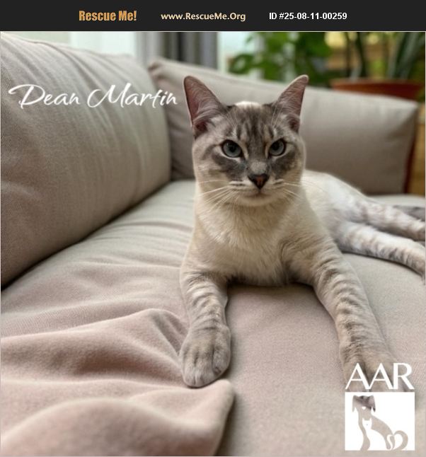 Dean Martin is a handsome seven month old kitten . He is friendly, gentle, and playful. Dean may need time to warm up to new places and people before his true personality shines through. He has not been around dogs or other cats, other than his siblings.