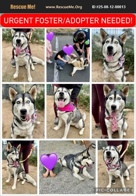 VIDEO INCLUDED: URGENT-Bailey's Life is at Risk! She Will Be Taken to a High Kill Shelter. This is a heartbreaking plea for Bailey, a beautiful 3-year-old Siberian Husky who has spent over a year in boarding, waiting and waiting for someone to choose her. Bailey has done nothing wrong. She's sweet, loving, and absolutely gorgeous with her stunning crystal blue eyes. She's been holding on with hope, but time is running out. If no foster or adopter steps up, Bailey will be taken to a high-kill shelter and we may lose her forever. What Bailey Loves: Going for walks and romping in the yard. Playing with her toys. Snuggling with children (she's amazing with kids!). Giving and receiving love. Being part of a family. Bailey is good with other dogs her size (with proper intro). No cats, small dogs, or farm animals, please. She has a huge heart and a cute, playful personality. She's ready to love someone with her whole being. She just needs someone to say yes. Please, if you've ever considered fostering or adopting, let it be now. Let it be Bailey. She deserves more than this. She deserves life. CONTACT: Pumpkin Pawz Rescue: Jennifer Newman: 714-366-8170 SHARE everywhere. Post, text, tag. Her life depends on it. Let's not let Bailey down.