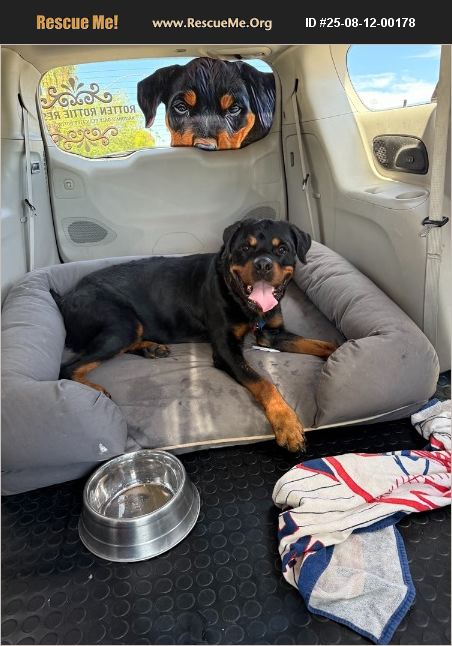 Meet Kobe - a handsome, goofy Rottweiler overflowing with personality! He's had some obedience training and is currently brushing up on his leash manners. Kobe is the 'happy-to-meet-you' type who will do just about anything for a treat (he swears he's always hungry - maybe because he was underfed before coming to us). His playful energy and silly antics make him feel like a big 6-month-old puppy at heart. Kobe just visited the dentist, where his pearly whites got a full cleaning and polish�'�| now he's ready for his close-up in a Colgate commercial!. �%A0Kobe would love to meet you if you are in to spending time, with a rottweiler with big energy and who �%A0likes to be snuggled.�%A0 Our Adoption Process... If you are interested in adopting one of our fun loving not so rotten rotties, you will be asked to fill out a questionnaire that will allows us to get to know you better and to make sure the dog you are looking at is a good fit for your family and lifestyle. You can access our questionnaire by going to our website, www.rottenrottie.com click on the forms tab, and fill out the questionnaire and submit it online. After we review your answers, if we feel that the dog that you are interested in, is not a good fit for you and your family, we may recommend a different rottweiler companion. After we determine which Rottweiler(s) is the best for you, we will set up a time so that you can meet him or her at their house, where they will feel most comfortable and act as they normally do. We will require a home check to make sure the dog is going to a good home. �%A0An adoption contract will be signed to finalize the adoption and we do ask for a rehoming fee of $500�%A0for most adults, $350 for most of our seniors 6 years and above for any rottweiler mix of any age (except puppies) . Our fees for puppies fluctuate depending on how much we had to invest into them or their litter, and weather they are purebred or a mix. These funds are necessary so that our organization may continue to rehome rottweilers. ALL of our dogs are sterilized, fully vaccinated and microchipped, heartworm tested negative and come with a collar and a leash. We have also addressed any injury or illness that they had when they came to us, or received in foster care. These problems will be disclosed to the adopter prior to adoption. please be advised that in almost all cases we will not adopt our dogs to folks who live in different states.�%A0�%A0On rare occasion, if we feel that it is a PERFECT for both you and the dog, we sometimes will break that rule for our neighbors who live in Las Vegas. If you live in Vegas and would like us to consider you, please fill out an application.�%A0