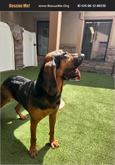 Dixie is a 3 year old female intact purebred bloodhound, known for her amazing tracking ability and high prey drive. She used to live on a large acre property, roaming and protecting the property from coyotes. She will not do well in a small apartment, and does not like other dogs, but is very kind to humans even strangers. She needs to have a job or she feel like she has not fulfilled her potential. She has no known health conditions and has been examined by a veterinarian, has a clean bill of health, heartworm negative.