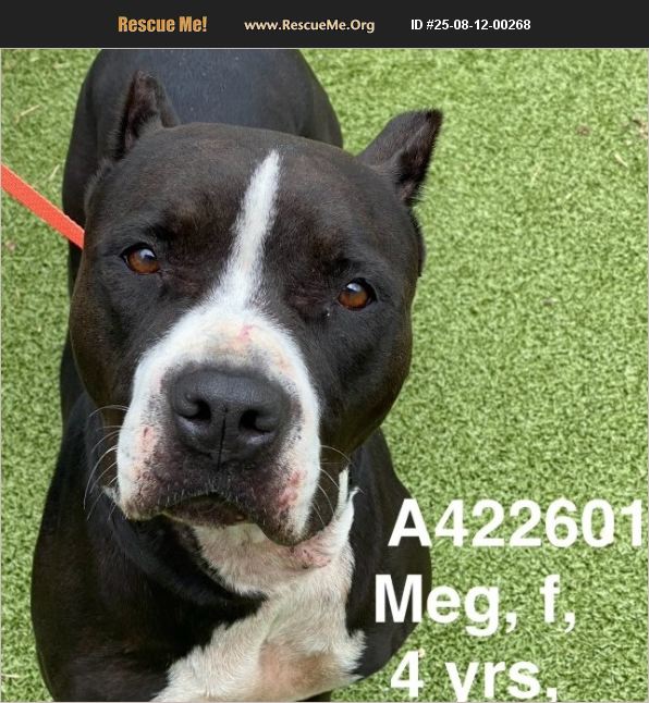* weighs 55 pounds * heartworm test is not completed yet * abandoned with another female dog Nikki (A422601). They were both covered in fleas and are flea free now! * she's not spayed yet but she will be upon adoption if not before * greets at kennel door with tail wags * quiet and calm in kennel * leashed up easily - walks along beside you * smart and knows the sit command * loves treats and takes then gently * curious explorer - checked out the yard and enjoyed sniffing everything * friendly, happy, social, loving * she's a big fan of back scratches and leans in close to your legs for them Meg is a beautiful girl who is eager to be your friend. She hasn't had the best life, sadly she was neglected and abandoned. Despite her sad past, she wants nothing but your love and affection. Meg greets you at her kennel door with tail wags and a friendly face. She was happy to go outside and spend time together. She quickly showed off her sweet personality. She snuggled up close to me and enjoyed every ounce of attention she was given. Meg is looking forward to having a home and family. We have a full shelter! Please come meet her at Cumberland County Animal Services, Fayetteville, NC 910-321-6852