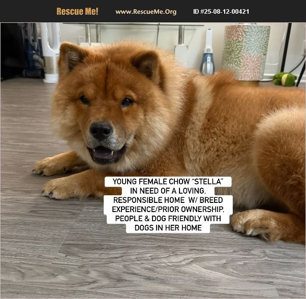 Courtesy Posting: LOS ANGELES COUNTY, CA (but some transport may be available 2 hours east if you can meet halfway )- YOUNG FEMALE CHOW 'STELLA' IN NEED OF A LOVING, RESPONSIBLE HOME W/ BREED EXPERIENCE/PRIOR OWNERSHIP, people and dog friendly with dogs in her home Please help us find a loving, responsible chow savvy home for beautiful Stella, an approximate 1 year old, 45 lb, female chow who was found abandoned in a vacant home with several other dogs. Stella has since been vaccinated and has a spay appointment in LA that must be adhered to. Her finder says, 'She is very friendly, loves kids and dogs. I'm not sure about cats. She is potty trained and was left behind in a backyard in Victorville when the renters moved out. She is not fixed yet. I'd like a rehoming fee of $200 if possible.' If you are breed savvy and are interested in meeting and adopting Stella in person or meeting nearby, please contact [email protected] or Southern California Chow Chow Rescue Network who is assisting the finder with her placement. Sorry, we do not transport to private homes unless a rescue is involved due to risks of a home or dog not working out for any reason. If you do have another pet, a meet and greet is strongly recommended. And any new dog in a home, and particularly as chow grows up, their personality with others and other dogs may also change, Early and continued socialization with both is important. All adopters will be asked for a home check (which may be virtual), an application, a vet reference, proof of prior or current chows, and a signed adoption contract. We will be posting more pictures and any videos of Stella on facebook at: https://www.facebook.com/debbie.alder.14/posts/pfbid0rn34TnsRbyBDPaRCFYENTFRLc74veBNqmxxbxc4yBBYREKz3JLoYuc6iFkEzHKGJl Note: to view contents of link you will need to copy and paste it into your browser.
