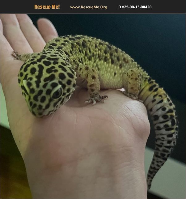 Female leopard gecko. 7 years old. Perfect health, no previous health issues. Sheds normally once per month. Eats regularly. Healthy weight. No lethargy. Missing the ends of a few toes from mishandling from breeder. Handles well, but can be skittish at times. Can include tank and hides upon request, inquire if interested.