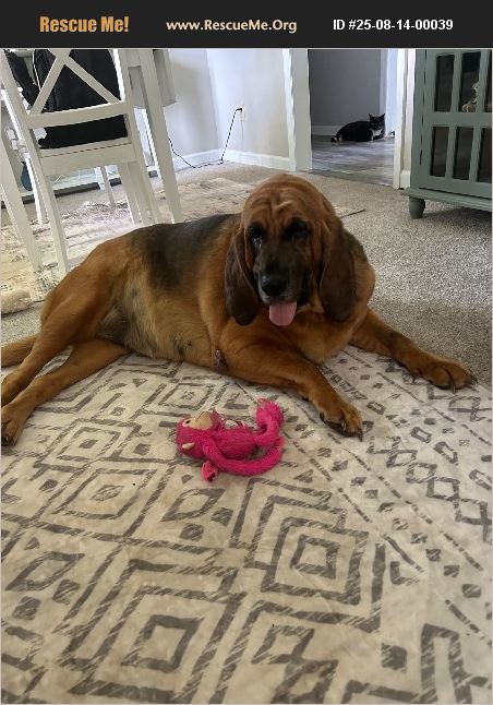 Wry sweet girl. A little on large size. Very calm and lay on porch most day. Not problem with other animals. She is purebred bloodhound.