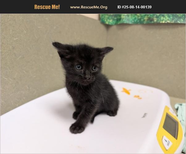 I am described as a male, black Domestic Shorthair. The shelter thinks I am about 6 weeks old. I weigh approximately 1.06 lbs. I have been at the shelter since Aug 01, 2025 and I am available for adoption now! Adoption hours: Tuesday - Friday 10:00am - 5:00 pm | Saturday 10:30am - 3:30 pm.