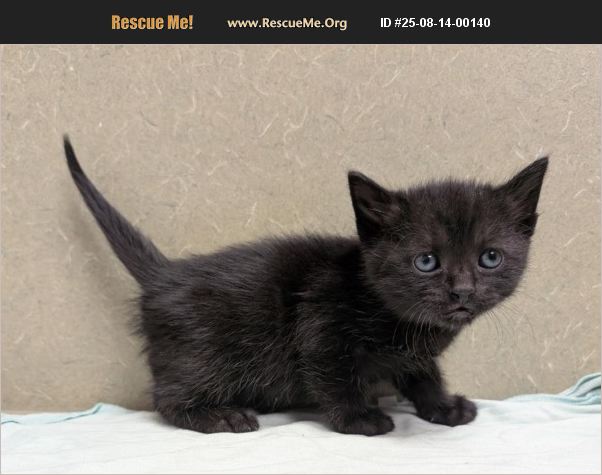 I am described as a male, black Domestic Shorthair. The shelter thinks I am about 6 weeks old. I weigh approximately 1.12 lbs. I have been at the shelter since Aug 01, 2025 and I am available for adoption now! Adoption hours: Tuesday - Friday 10:00am - 5:00 pm | Saturday 10:30am - 3:30 pm.