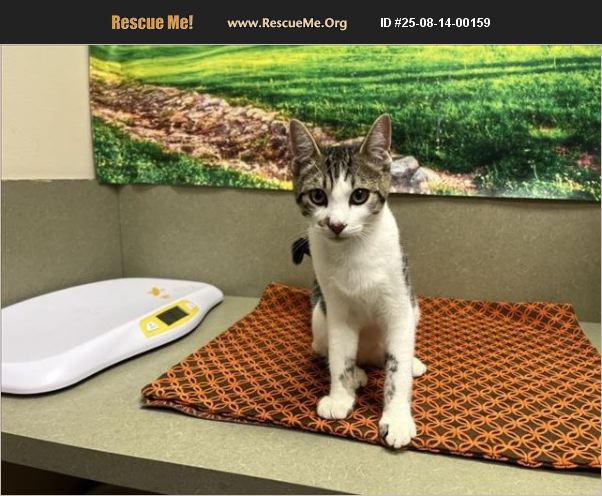 I am described as a neutered male, white and gray tabby Domestic Shorthair. The shelter thinks I am about 6 months old I weigh approximately 6.80 lbs. I have been at the shelter since Aug 12, 2025 and I am available for adoption now! Adoption hours: Tuesday - Friday 10:00am - 5:00 pm | Saturday 10:30am - 3:30 pm.