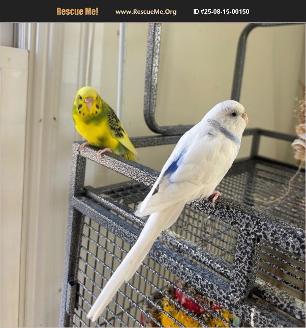 Seele (white budgie, age 6) and Pinto (yellow budgie, aged 3) are two sweet, curious birds. They thrive in environments with other birds or where they can be near people. Though they don't always choose to interact physically with people, they love to chatter to you and they will sometimes hangout on you and preen your hair. They take awhile to warm up, but once they do, they're sweethearts. Unfortunately, my parents can no longer care for them in a way where they'll get the attention they'll need. They'll come with a flight cage and cage set up, some treats, perches, and toys. I have all of their vet records from their annual visits. They were going to go to a home that recently backed out of taking them so now we only have a week to find them a home. Please help!!!! They do great with other birds, including cockatiels.