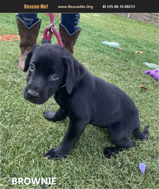 Brownie is one of 6 in a litter. The man who surrendered them said father is 100% Black Lab and mom is Black Lab mix. She is 10 weeks old, has started on puppy shots and been dewormed. She will be spayed and chipped. Energetic, playful, affectionate, loves toys, good with other dogs and kids.