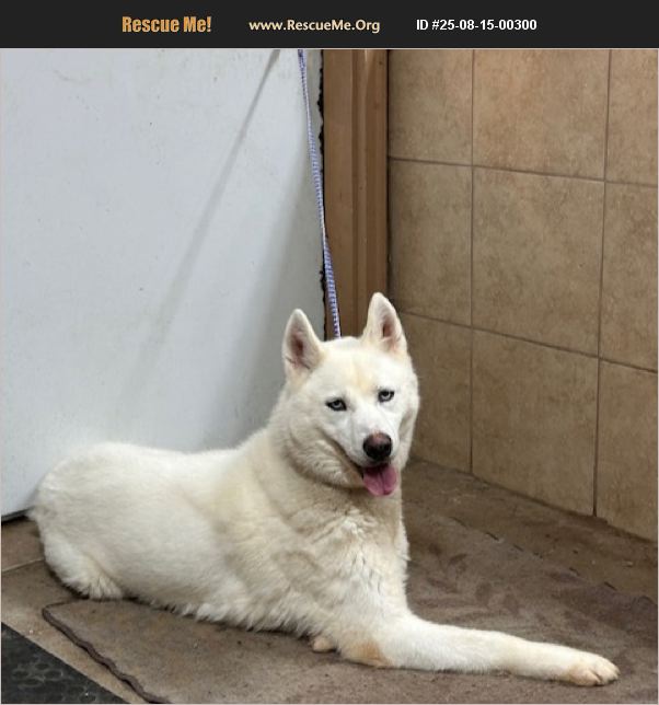 Sugar is a beautiful all white Husky. She is probably around 2-3 yrs old and very sweet. I don't think she has been spayed yet so that would have to be done within 30 days of her adoption. She would also need her vaccinations. She is a pretty calm husky and not as vocal as some. Once you prove that she is spayed then you get $50.00 refunded to you.