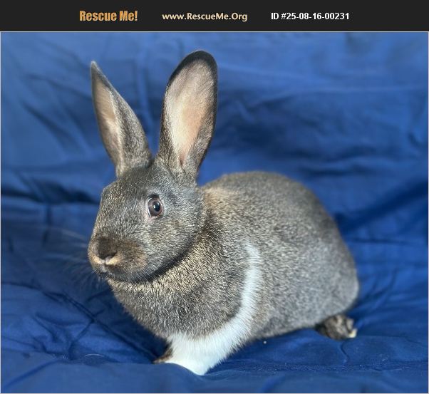 'Leftie' is an 8 week old female bunny, born to a rabbit that was pregnant when I rescued her. Details on this bunny, who I call 'Leftie' - Nashville, TN - 8 weeks old, Female (Doe) - Grey/brown with one white leg, brown eyes, funny baby that loves food, snuggling with siblings, and binkying around the room. - Mom is Havana (all black, silky), and dad is Dutch (brown brindle and white) - Raised indoors, snuggled and handled daily - very sweet and social