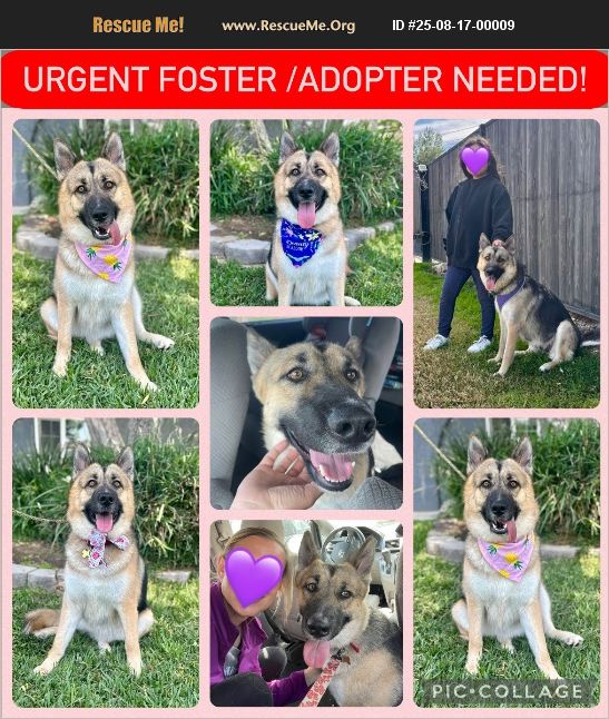 URGENT FOSTER/ADOPTER NEEDED! This stunning, dog friendly German Shepherd, Fiona is still waiting in boarding, she is looking for a foster or better yet her forever family! In January, she was found running loose in the neighborhood and had been on the streets for at least three days before a kind-hearted Good Samaritan took her in. Fiona was a bit thin and full of milk, leading us to believe that she recently had puppies. Sadly, they were nowhere to be found. However Fiona's thrived since then! Here's what we know about her: Current on vaccines. Spayed. Housebroken. Great with kids and other dogs! Sweet, loving, and friendly. Knows basic commands. Playful, snuggly, and full of personality. This sweet girl has already stolen hearts with her goofy and affectionate nature. If you are interested in fostering or adopting Fiona, please contact Jennifer with Pumpkin Pawz Rescue at +1 (714) 366-8170. Let's get this beautiful girl the love and care she deserves!