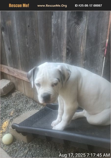 Tank is a purebred American Bulldog. He comes from a litter of unplanned puppies. Their parents belonged to a close friend of mine that recently passed away. During the time immediately after his death, the mother went in to heat, this went unnoticed until it was too late, found out when she started to show. Tank is the largest puppy out of the litter, he extremely affectionate and loving. He has a awesome personality. He is working on potty training, and he has been crate training as well. He gets a little vocal when he doesn't get his way. He spends a lot of time with my kids, I socialize him with my other dogs. He is learning to respect older dogs boundaries, this is new and he is just starting but making progress. I believe a dog is for life. I have placed every other puppy from the litter with a close friend or family member, I am nervous about posting him for adoption and will be very selective about who Tank ends up with. Any kind of references you can provide would greatly improve your chances of taking Tank home. He has beautiful blue eyes and blue markings on his face and ears. One of Tanks siblings has had a DNA test done. She showed 100% American Bulldog blood. No increased risk for any of the genetic disorders they test for. The parents were about 4 years old and have never had any health issues. The father is all white and didn't have any food allergies.