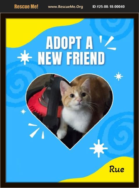 Rue - She's Orange, Adorable, a Hugger, and Unforgettable!!! Look at that tiny, sweet face....sooo much personality. Looking for a kitten who will literally hug you? Meet Rue, a rare and irresistible female orange tabby with a face so endearing it'll melt your heart. Orange marmalade cats are usually boys, so Rue is a special gem-and she's got the personality to match! At just 4 months old, Rue is learning how to hug and insists on face rubs to show her affection. She's playful, snuggly, and full of kitten mischief. Rue doesn't just want love-she demands it, and she'll make sure you feel adored every single day. Rue's Favorite Things: - Cat springs and laser pointers - Wrestling and chasing other kittens - Window watching and bird spying - Hugging and face rubbing (her specialty!) Rue has boundless energy and would thrive with a playful buddy to keep her company. She's a social butterfly who loves to explore, cuddle, and entertain. Health & Adoption Info: - Spayed - Fully vaccinated - Litter trained - Micro-chipped with free lifetime registration - Great with kids over 10,and friendly dogs - Rue needs a buddy to play with. Adoption Fee: $175 August Special: Adopt by August 31, 2025 and get $25 off! Plus, enjoy 15% off all items at Pet Supplies Plus - Hanes Mall, Winston-Salem with your adoption. Risk-Free Trial: Not sure if Rue is your perfect match? Try our two-week trial adoption-if it's not love at first purr, we'll take her back with no pressure. About Us: Rue is available through Rusty's Tales Rescue, a new local rescue formed from Snow Camp Sanctuary to focus on adoptable kitties right here in our community. Ready to meet Rue and fall in love? She's waiting to hug her way into your heart. Apply here: https://rustystalesrescue.com/adoption-application