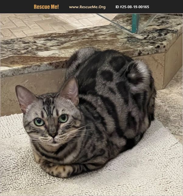 Santa Barbara, CA Chilly, Female Bengal, 9 years young Chilly is a sweet, gentle and very quiet Bengal girl who is a bit shy when meeting new friends. She's looking for a quiet home where she can take her time to adjust and feel safe. Once she trusts you, she'll show her affectionate side and may even become your shadow. If you're a patient person who understands a timid heart, this beautiful girl could be the purrfect addition to your family. Chilly came from a multi cat home but prefers to be the only cat or maybe live with another mild tempered cat. She hasn't lived with dogs but would do fine with a cat friendly dog. Chilly no longer eats dry kibble but is on a canned and raw food diet. Her fur is soft as silk due to the change in her diet. Chilly has had a vet exam, spayed, vaccinated, senior blood panel, (FVRCP & Rabies), FELV/FIV tested negative, dewormed, flea treatment, dental cleaning and microchipped. Adoption fee: $200 (which includes her brand new carrier).