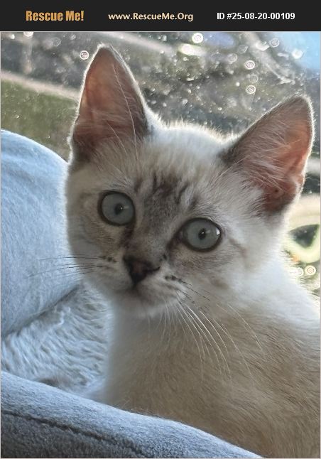 8-9 week old kitten, Lynx Point Siamese. Rescued from outside, neutered and vaccinated, will be able to deliver out of town. Located in Spokane.