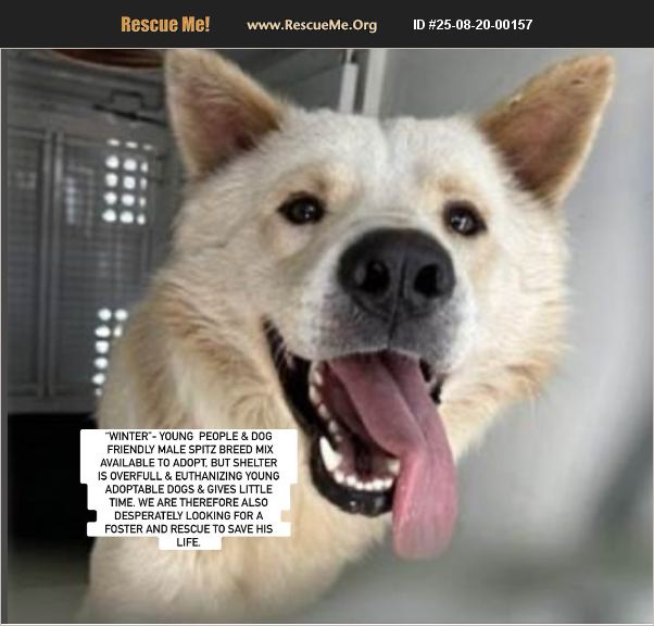 Courtesy Posting: HELP!!! X URGENT- Riverside County Shelter, San Jacinto location, So Cal - ID #A1871886 'WINTER'- YOUNG PEOPLE & DOG FRIENDLY MALE SPITZ BREED MIX AT GREAT RISK IN HIGH KILL SHELTER. AVAILABLE TO ADOPT, BUT SHELTER IS OVERFULL and EUTHANIZING YOUNG ADOPTABLE DOGS AND GIVES LITTLE TIME. WE ARE THEREFORE ALSO DESPERATELY LOOKING FOR A FOSTER AND RESCUE TO SAVE HIS LIFE. RESCUES NEED FOSTERS TO HELP! LISTED AS A 2 YR, 56 LB CHOW X, HAS PINK TONGUE WE ARE LOOKING FOR EITHER A LOVING AND RESPONSIBLE HOME, OR A FOSTER AND RESCUE FOR WINTER as we have named this gorgeous boy. Winter was found as a stray and is now kenneled with two unrelated dogs he gets along with (#A1867152 and #A1867552). Please note kennelmates may change as new dogs come in or leave. Winter has no negative behavior or medical notes. Unfortunately, because the shelter is so full, he may have little time to be adopted or rescued before he is add to the euthanasia list without warning. Therefore, if you are interested in adopting Winter, please contact the shelter immediately by calling (951) 358-7387 and reference his applicable ID and also use his listing link to express interest. Listing link: https://24Petconnect.com/DetailsMain/RVSD3/A1871886 If you are interested just to foster, or foster to adopt, or if you need further help, please contact [email protected] or Southern California Chow Chow Rescue Network asap as we are trying to find fosters we can then refer to a rescue group to save him in time. There is also a chance he could be fostered through the shelter, or we could pair you with a rescue group to assist with this as a foster. If you are a rescue group and interested in pulling this beauty, please email the shelter right away at: [email protected] and call (951) 358-7302. We will be posting additional information, pictures and video on facebook at: https://www.facebook.com/debbie.alder.14/posts/pfbid0QnisLvR2eA6w1Mu3b1z2ZzGMsLH6jYnSLoTtjRhTt94MnBhwhZki4CsFJ8uAw2Wul Note: to view contents of links you will need to copy and paste each one separately into your browser.