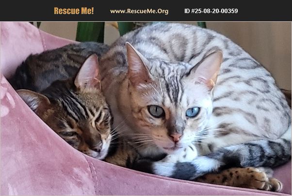This is a pair of Bengals. Lovie is female and on the left. Van is male on the right. They are bonded and should stay together.