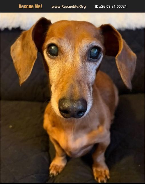 BASIC FACTS Breed: Dachshund Color: Smooth Red Age: 11 years Gender: Female, spayed Size: Small, 10 pounds House-trained: Yes Crate trained: Yes Good with Kids: Older kids only Good with Dogs: Yes Good with Cats: Yes Concerns: Impaired vision BIOGRAPHY Meet Ruby! Ruby is a sweet, 11-year-old miniature dachshund looking for her perfect forever home. She was surrendered to rescue along with her 'brother,' Murray, however, they are not bonded. Ruby is a perfectly healthy little girl, although she does have limited vision, so care will need to be taken to ensure she doesn't injure herself. For instance, if up on the couch or bed, she has not depth perception, so she could easily walk off the edge. Ruby does not let her impaired vision stop her! She is a happy girl who likes nothing better than to lounge next to her favorite human - or better yet, curl up in their lap! Her ideal hope would be with a retired person/couple or someone who works from home, as she is a bit of a Velcro dog and is happiest when her humans are near her. Ruby is spayed and current on her rabies vaccination. Given her age, her former owner's vet advised against further vaccinations, so this is something that her adopter may discuss with their vet She is being fostered in Pen Argyl, PA and is available for an adoption fee of $300.00. If you are interested in adopting, please submit an application online at www.sophiasgracefoundation.org