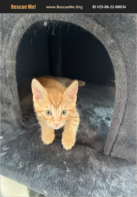 Jin (short for Kojin) is a delightful little orange kitten that I rescued outside my apartment complex when he was stuck in the gas pipes. He is very friendly, and as much as I would like to keep him he needs the company of another young cat to play with when I am gone at work. I have two older cats and he just has too much energy for them.