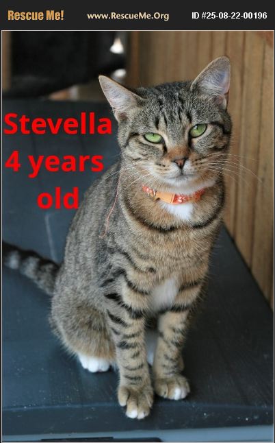 Stevella of the DeVille Team is a 4 year old tabby sweetheart. She is the sweetest girl and loves to play and nap on her human, and is great with dogs, cats and kids. She is spayed, FIV/ FeLV negative, current on vaccines for age and dewormed. She is on a renal diet and will need to remain on this for life. Her adoption fee is $125. Apply at roseacreasrescue.org.