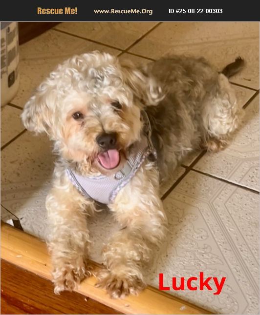 Lucky is a 4 year old male yorkie-poo weighing approximately 10 lbs. Good with other dogs.