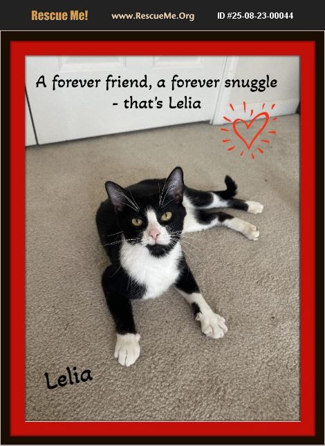 Meet A Forever Friend, A Forever Snuggle - That's Me!! ...Lelia Your Future Snuggle Buddy! I am the sweetest people-pleaser kitty you'll ever meet! I adore lap time, chin rubs, and being the center of your attention. Don't be surprised if I drift off to sleep in your arms-I just feel that safe and loved. My striking black-and-white coat makes me extra unique and charming, but it's my gentle personality that will truly win your heart. When you pet me, I'll purr and lean in to show you just how much it means. My perfect day is simple: spending time with you, curled up in your lap or beside you, while you tell me about your day. My Story I was rescued after being found as a stray by a kind teenager. The rescue believes I was once someone's pet, sadly abandoned despite my incredibly sweet nature. At the time, I was pregnant and gave birth to four kittens. Three of them-Silvia, Wednesday, and Koko-are still looking for homes too. If you've ever thought of adopting two kitties, we'd love to be adopted together, but I'll also thrive as your one-and-only. My Dream Home -I'd do well as a single kitty or with another friendly cat. - Have a person that would enjoy an engaging, social kitty. -I don't mind respectful dogs. -I'd be happiest with kids 10 and up. -I love toys-spring toys, glitter balls, catnip mice, and especially dangle wands that make my eyes go wide with excitement! Adoption Perks -Spayed -Up to date on vaccines -Micro-chipped (with free lifetime registration!) -2-week adoption trial - if it's not the right fit, the rescue will take me back (no risk adoption guarantee!). - Adoption Special, Standard fee: $150 Summer Special - $25 off if adopted by August 30, 2025. -Adopt me with one of my kittens and get an extra $25 off the second adoption fee Plus, adopt me through Rusty's Tales Rescue and receive a 15% discount at Pet Supplies Plus (Hanes Mall, Winston-Salem) to help you stock up on food, toys, and supplies! My heart is ready to love. My lap is waiting for yours. A Forever Friend, A Forever Snuggle - That's Me!!