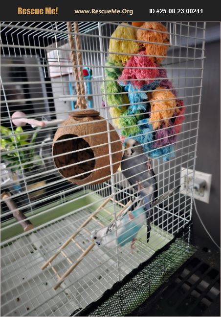 2 budgies one is male and one female. Dark blue is female and named Storm. White is male and is named Cloud. Well taken care of, hoping to find someone to love and spend more time with them then we can.
