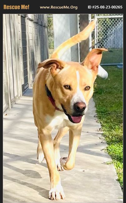 Hi I'm Skog pronounced SKOOG lol! They call me that since it is the Swedish word for forest as every time I see a trail or patch of woods I want to run in and explore! (For some reason I also respond to it better than the first name they chose.) Shelter staff are not sure just exactly what I am - but I have ears that are hound like- a super long tongue- long limbs with white socks and wide paws. I look like I might enjoy a walk on the trail or a hop in the lake! Hey there- Skoog is still with us at the shelter- we learn more about him everyday. Skog has a spirit that can't be destroyed- even after being here over 18 months. He is still hopeful and joyful when he sees strangers - his tail wags when he sees another dog and just wants to make friends. Skoog is a people pleaser and has one intriguing fear. The monster named port o potty! They are so odd and intimidating standing so still and in random places lol. Skoog is also learning to be more of a gentleman when he is meeting new people even though he is overwhelmed with joy at the idea of licking a new face! He knows sit and might give you some paw - but one thing he will always give to you in abundance is his love and attention. Hello there the adoption fee is $20.00 CASH OR CHECK it is low as we do not spay/neuter our animals or vaccinate as we do not have a vet on site. Upon adoption you would sign a legal contract stating that within sixty days you will get them sterilized and vaccinated per state requirement. Sometimes due to age or complications the 60 day window can be extended however only by a vets discretion. You do not legally own the animal until proof of vaccination and sterilization have been given to us. You may come to the shelter any day of the week between 8 am and 4 pm, just please give us a call beforehand to let us know you are coming at 281 291 5644. Thank you!